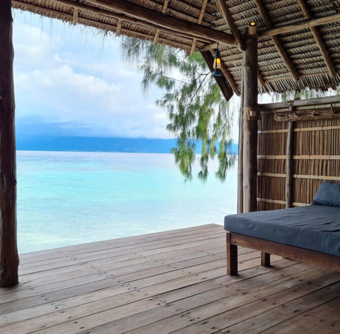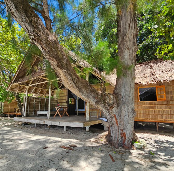 Our twelve beachfront bungalows offer a true island escape, where comfort meets nature in perfect harmony. Set along the white sands of Wai Private Island, each bungalow is built in traditional Papuan style using locally sourced materials, with natural ventilation that lets the sea breeze flow through.